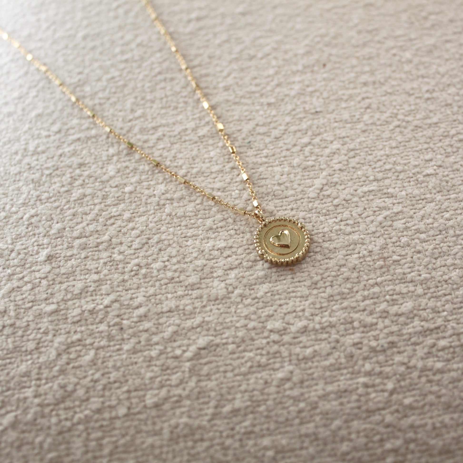 The Heart Pendant Necklace is handcrafted with 18k gold-filled material and finished with a Heart charm. It is the perfect dainty necklace to reach for everyday, as well as layer it with bolder necklaces for an elevated look.